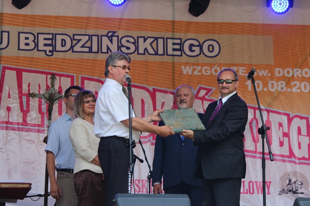 - Jest nam niezmiernie miło powitać wszystkich na Wzgórzu św. Doroty, w miejscu, które od lat łączy całe pokolenia mieszkańców Ziemi Będzińskiej. Tegoroczne Święto Powiatu Będzińskiego organizujemy wspólnie z parafią pw. św. Katarzyny w Grodźcu.Niezmiernie cieszy nas, że od kilku lat „Dorotka" na nowo zaczyna tętnić życiem. Nasze tegoroczne święto ma szczególny charakter. Przypada bowiem w roku jubileuszu piętnastolecia odrodzenia się powiatu będzińskiego, który powrócił na mapę administracyjną Polski - tymi słowami rozpoczęli powiatowe święto starosta będziński Krzysztof Malczewski i przewodniczący rady powiatu Emil Bystrowski. Imprezę otworzył występ Kapeli St. Wyczyńskiego z Lubczy, która przyjechała na Wzgórze św. Doroty wspólnie z przedstawicielami zaprzyjaźnionego powiatu jędrzejowskiego.