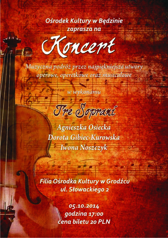 Najpiękniejsze arie operowe, operetkowe i piosenki z musicali zabrzmią 5 października w filii Ośrodka Kultury w Grodźcu.