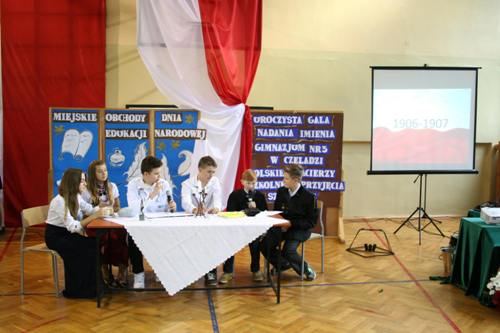 Uroczyste nadanie imienia szkole i jubileusz piętnastolecia jej istnienia było najważniejszym punktem miejskich obchodów Dnia Edukacji Narodowej w Czeladzi. Gimnazjum otrzymało również sztandar.
