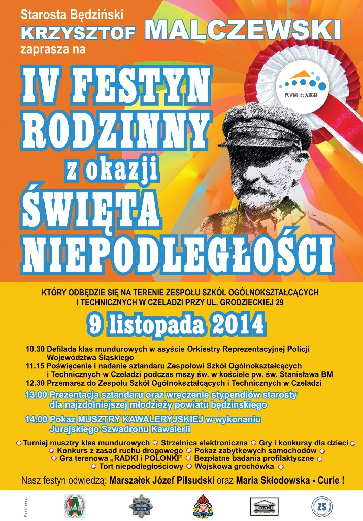Marszałek Józef Piłsudski i Maria Skłodowska - Curie będą gośćmi specjalnymi kolejnego już, IV Powiatowego Festynu Rodzinnego z okazji Święta Niepodległości, który odbędzie się w najbliższą niedzielę w Czeladzi.