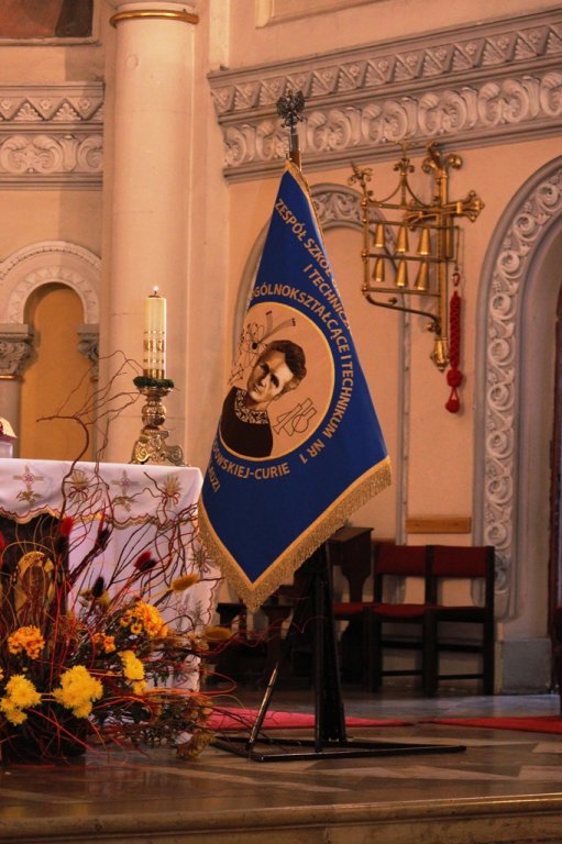 Wszystko rozpoczęło się jak najbardziej na poważnie i bardzo uroczyście. O godz. 10:30, przy dźwiękach Orkiestry Reprezentacyjnej Policji Województwa Śląskiego, młodzież z klas mundurowych przedefilowała ulicami miasta do kościoła pw. św. Stanisława BM. W trakcie uroczystej mszy proboszcz parafii ks. kan. Jarosław Wolski dokonał poświęcenia sztandaru Zespołu Szkół Ogólnokształcących i Technicznych w Czeladzi. Piękny sztandar z wizerunkiem jego patronki – Marii Skłodowskiej – Curie od tego dnia będzie towarzyszył społeczności szkolnej w trakcie najważniejszych wydarzeń.