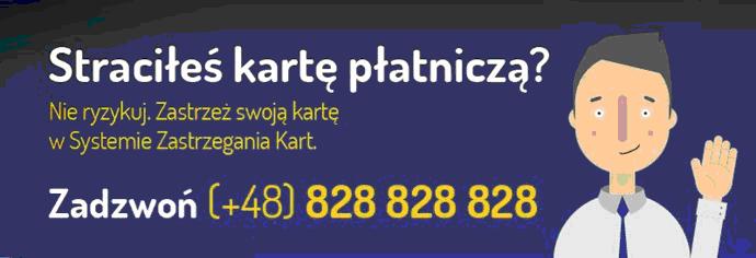 System Zastrzegania Kart – pod numerem telefonu (+48) 828 828 828