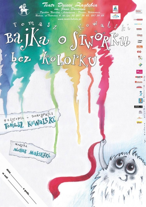 Tym razem zapraszamy wszystkich maluchów na „Bajkę o Stworku bez kolorku”, której autorem i reżyserem jest Tomasz Kowalski. Bohaterami są sympatyczny, „pozbawiony koloru”, biały Stworek i potwornie kolorowy Potworek. Jak mówi o spektaklu jego autor i reżyser, Tomasz Kowalski: „Inspiracją do stworzenia Stworka były malutkie i słodziutkie, nieopierzone kurczątka. Taki jest też nasz Stworek – niedoświadczony, rozpoczynający swoją drogę przez życie.” Akcja spektaklu toczy się zatem wokół poznawania przez Stworka kolorków, a także zwierzątek i innych zjawisk takich jak tęcza, deszcz czy noc. Przedstawienie jest również okazją do radosnej zabawy poprzez aktywną interakcję na linii widz-aktor: w trakcie spektaklu dzieci, razem z bohaterami, śpiewają proste piosenki, uczestniczą w animacjach ruchowych, a kiedy spektakl dobiegnie końca – bawią się różnokolorowymi piłeczkami.