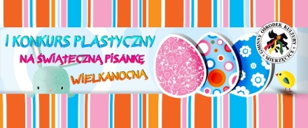Gminny Ośrodek Kultury w Mierzęcicach zaprasza do wzięcia udziału w I Konkursie Plastycznym na Świąteczną Pisankę Wielkanocną. Konkurs adresowany jest do dzieci, młodzieży i dorosłych. Prace należy dostarczyć do Gminnego Ośrodka Kultury do dnia 27 marca 2013 roku.