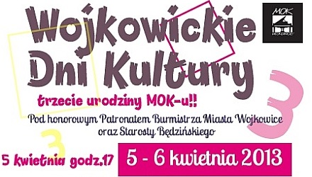 Już po raz trzeci odbędą się Wojkowickie Dni Kultury. W ramach tej trwającej dwa dni imprezy, organizator - Miejski Ośrodek Kultury w Wojkowicach, świętuje kolejny rok działalności. Corocznie WDK nawiązują bowiem do znaczącej daty - 1 kwietnia 2010 r. Od tego dnia MOK prowadzi swą działalność jako samorządowa instytucja kultury.