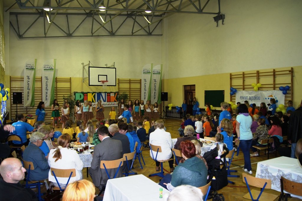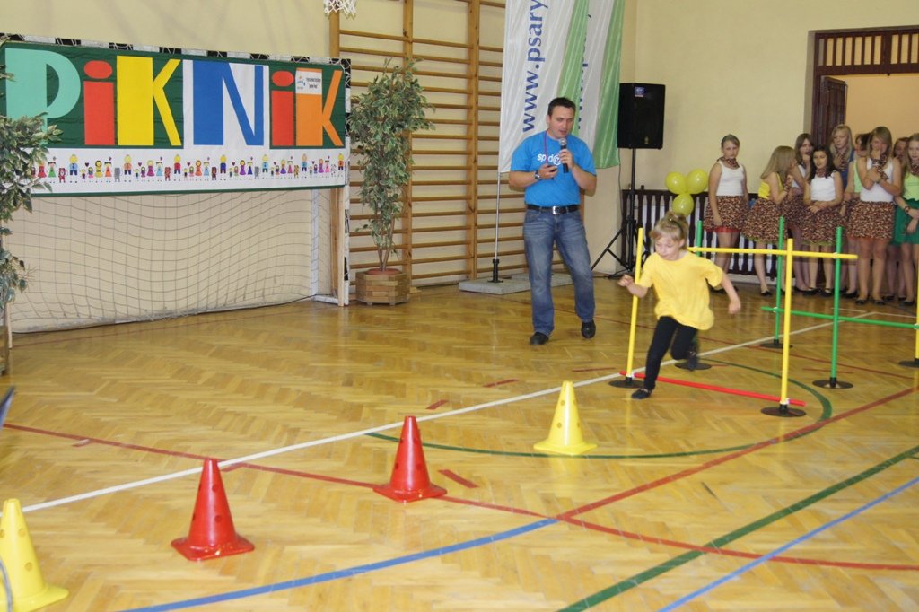 W piątkowe popołudnie 24 maja placówkę tłumnie wypełnili rodzice, dziadkowie, dzieci i liczni przyjaciele szkoły, wśród nich samorządowcy. W bogatym programie pikniku każdy mógł znaleźć coś dla siebie, bez względu ma wiek i upodobania. W konkurencjach indywidualnych dzieci przedszkolne sprawdzały swoje umiejętności w rzutach do celu, biegach i skokach, a dzieci starsze zmierzyły się na torze przeszkód. Duże zainteresowanie wzbudziły konkurencje sportowe rodziców, którzy pokonywali rowerowy tor przeszkód, wykonywali ćwiczenia siłowe, wbijali gwoździe do pnia drzewa, czy rzucali piłkami do kosza. Emocji było co niemiara. Atmosferę sportowej rywalizacji podsycały występy cheerleaderek. Poziom sportowy zawodników był bardzo wyrównany, dlatego wszyscy zostali uhonorowani nagrodami ufundowanymi z programu „Sportowy Powiat”. Przez cały czas trwania pikniku współzawodnictwu sportowemu towarzyszyły występy artystyczne przedszkolaków i dzieci szkolnych. Dominował taniec współczesny, popisy wokalne i gra na instrumentach. W trakcie imprezy można było się pokrzepić pysznymi wypiekami rodziców, pieczonkami, grillowaną kiełbaską, kaszanką, czy też pajdą chleba ze smalcem i ogórkiem.
