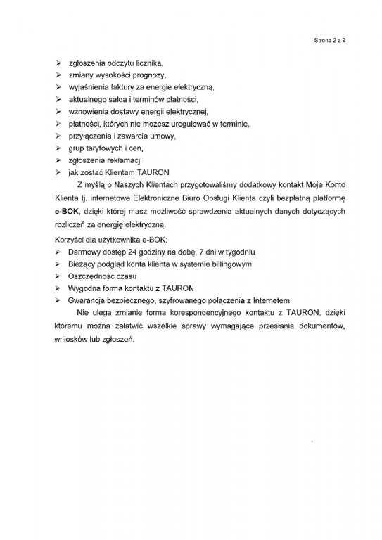 Komunikat TAURON Polska Energia, dotyczący zmian w zakresie terytorialnej obsługi klienta.