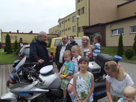 W trakcie imprezy pojawili się przed szkołą funkcjonariusze z Wydziału Ruchu Drogowego Komendy Powiatowej Policji w Będzinie. Policjanci sprawili nie lada frajdę dla dzieci, które mogły zasiąść za kierownicą radiowozu i zapoznać się z urządzeniami i sprzętem, jaki wykorzystują stróże prawa w czasie swojej pracy.