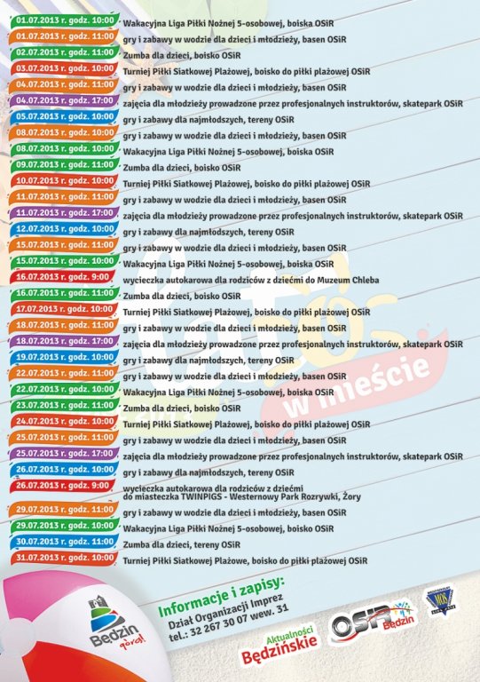 Poniżej znajdują się: oficjalny plakat "Wakacji w mieście" oraz kalendarz wydarzeń: