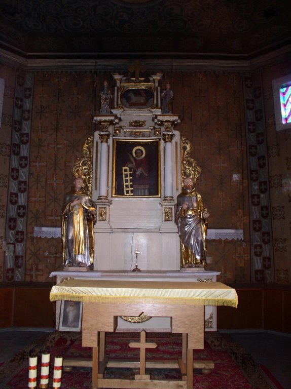 Kościół pod wezwaniem św. Wawrzyńca jest jednym z nielicznych drewnianych kościołów w Polsce mających dwie jednakowe wieże wzniesione symetrycznie względem osi. Najstarszą częścią kościoła jest nawa z prezbiterium zbudowana na planie prostokąta o ściętych od wschodu narożach, kryta pięciospadowym dachem zwieńczonym sygnaturką. Panujący w świątyni półmrok rozjaśniany jest przez słabe światło wpadające przez okna, które wzmaga aurę skupienia. Po przekroczeniu progu świątyni możemy obejrzeć piękne figury świętych i Jezusa Chrystusa, a także fragmenty pięknej polichromii.