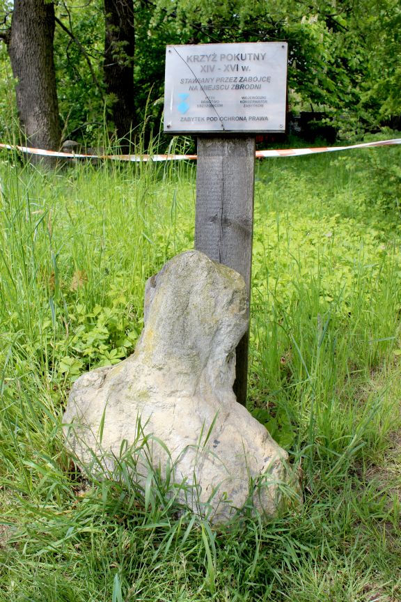 Krzyże pokutne i kapliczki pokutne to surowe kamienne formy, wykute w monolitycznych blokach skalnych. Jednym z krzyży pokutnych jest krzyż, znajdujący się w Strzyżowicach.