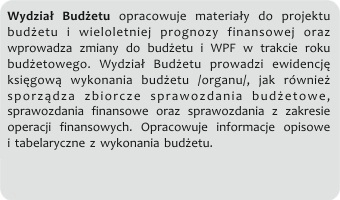 - prowadzenia ksiąg rachunkowych i obsługi finansowej Starostwa, jako jednostki budżetowej oraz Radnych w zakresie bieżących wydatków budżetowych;